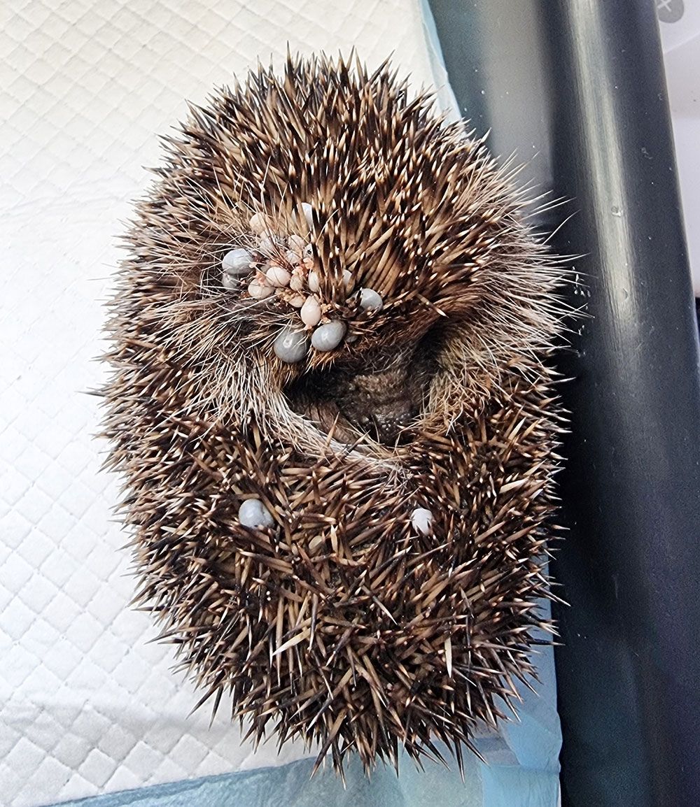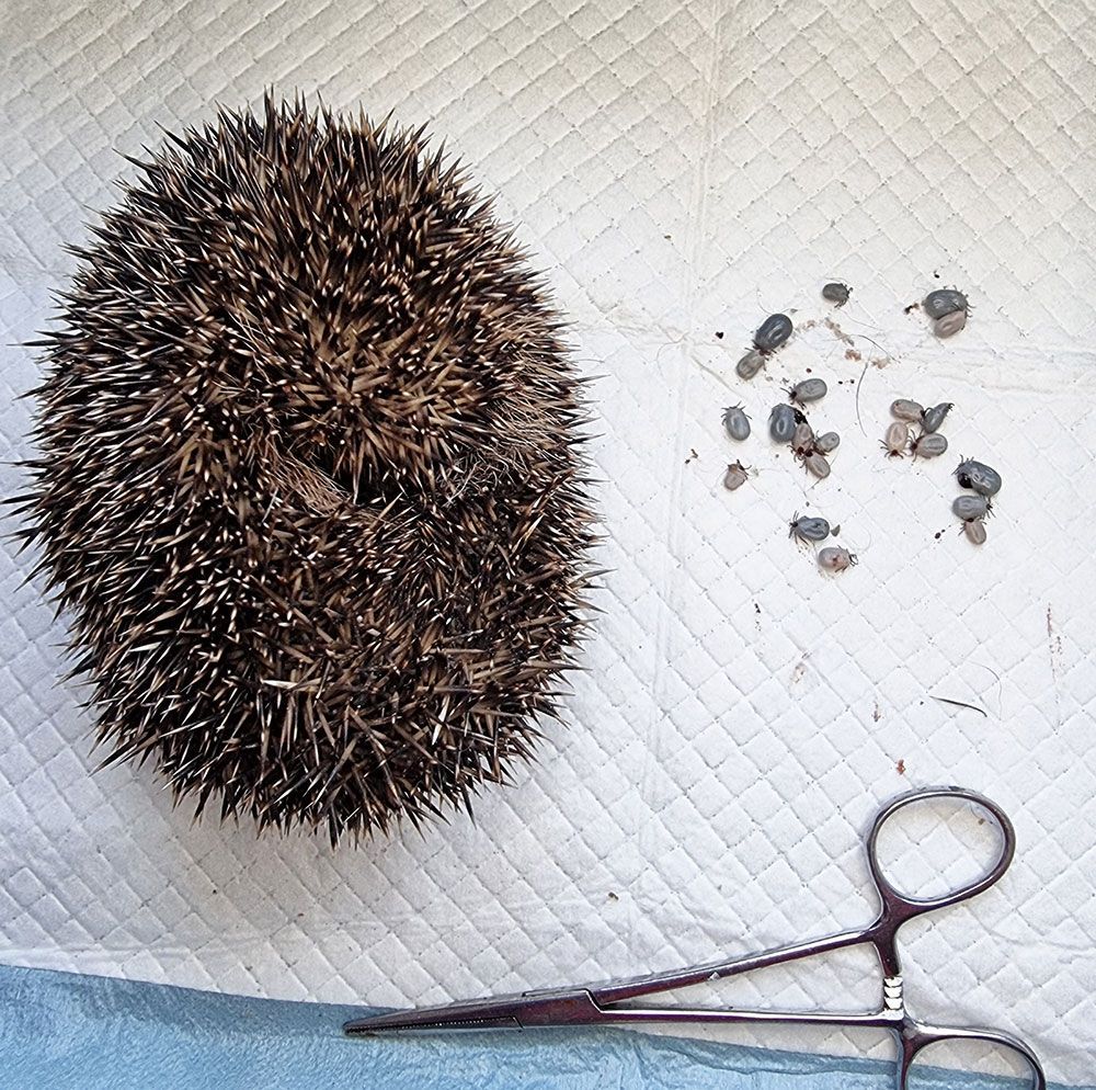 This little juvenile named 'Butters' was rescued from a local garden on 22nd October after he was seen to be out during the daytime. He has loads of ticks around his head. Had to wait for him to relax enough to uncurl for me to get at whatever was hiding underneath him. He must feel better with those off him.