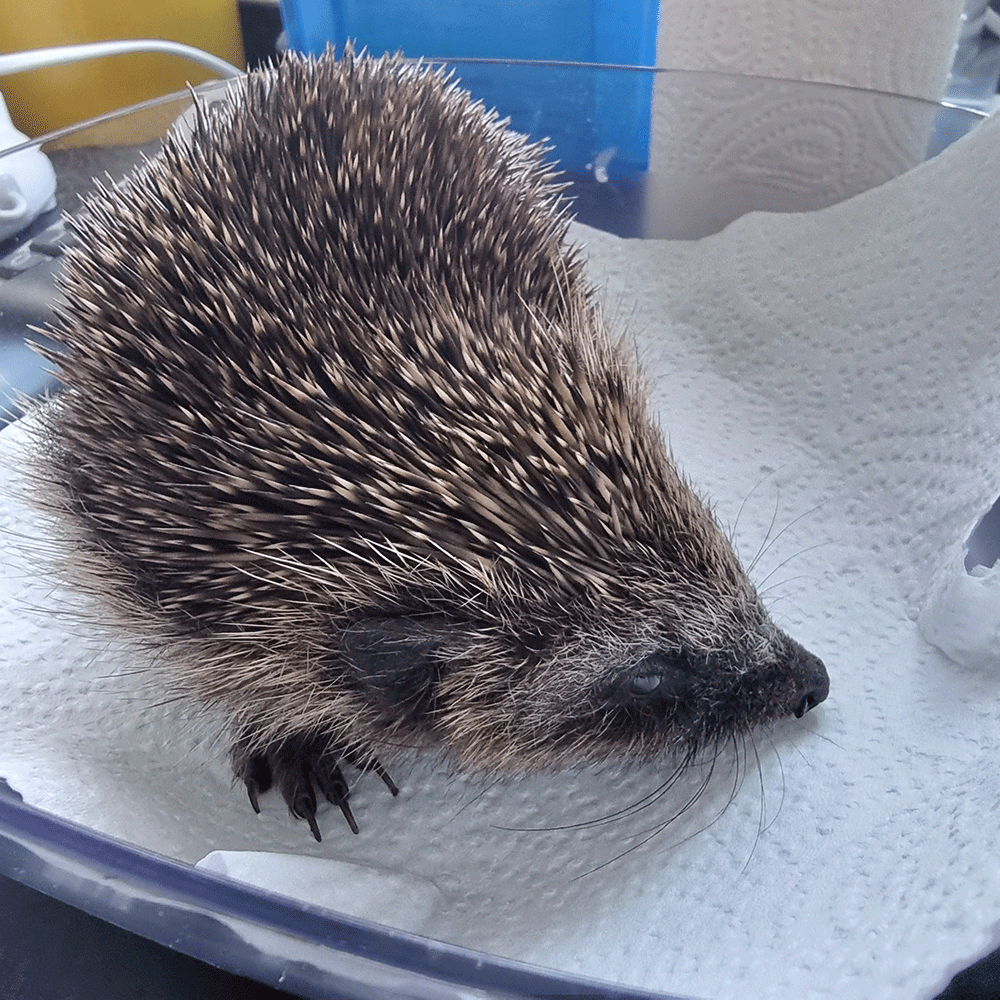 Found wandering around a graveyard in Hambleton during the daytime by a member of the public. Icy cold on admission and weighing just under 400gms. Microscope testing revealed she had a host of internal nasties going on. Given appropriate meds and replacement fluids. Currently eating well and slowly gaining weight.